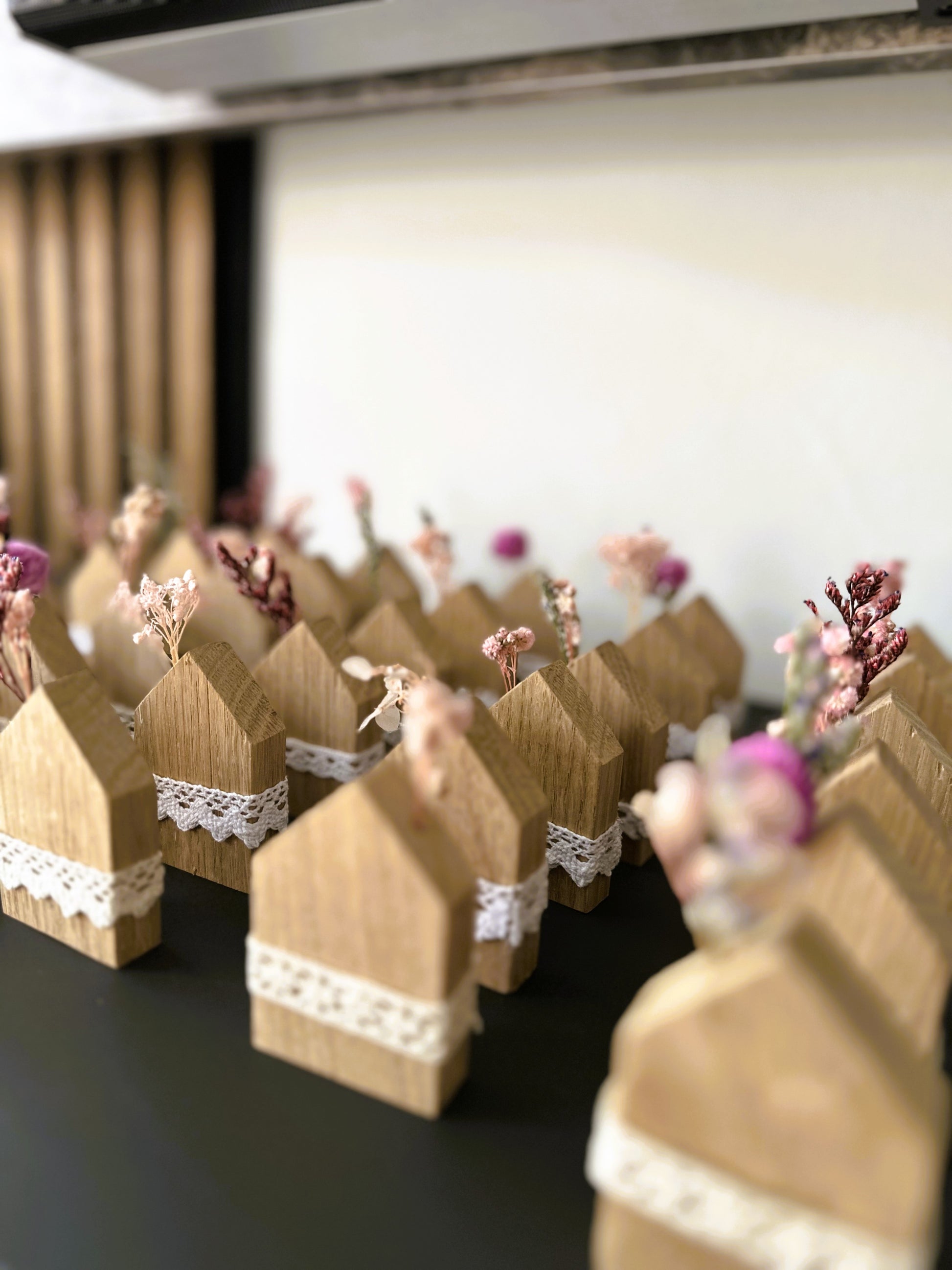 Kleine liebevolle Deko Häuschen in Handarbeit gefertigt. Bei unserem Holz handelt es sich um Material aus der Region. Eiche des Spessartwaldes.
